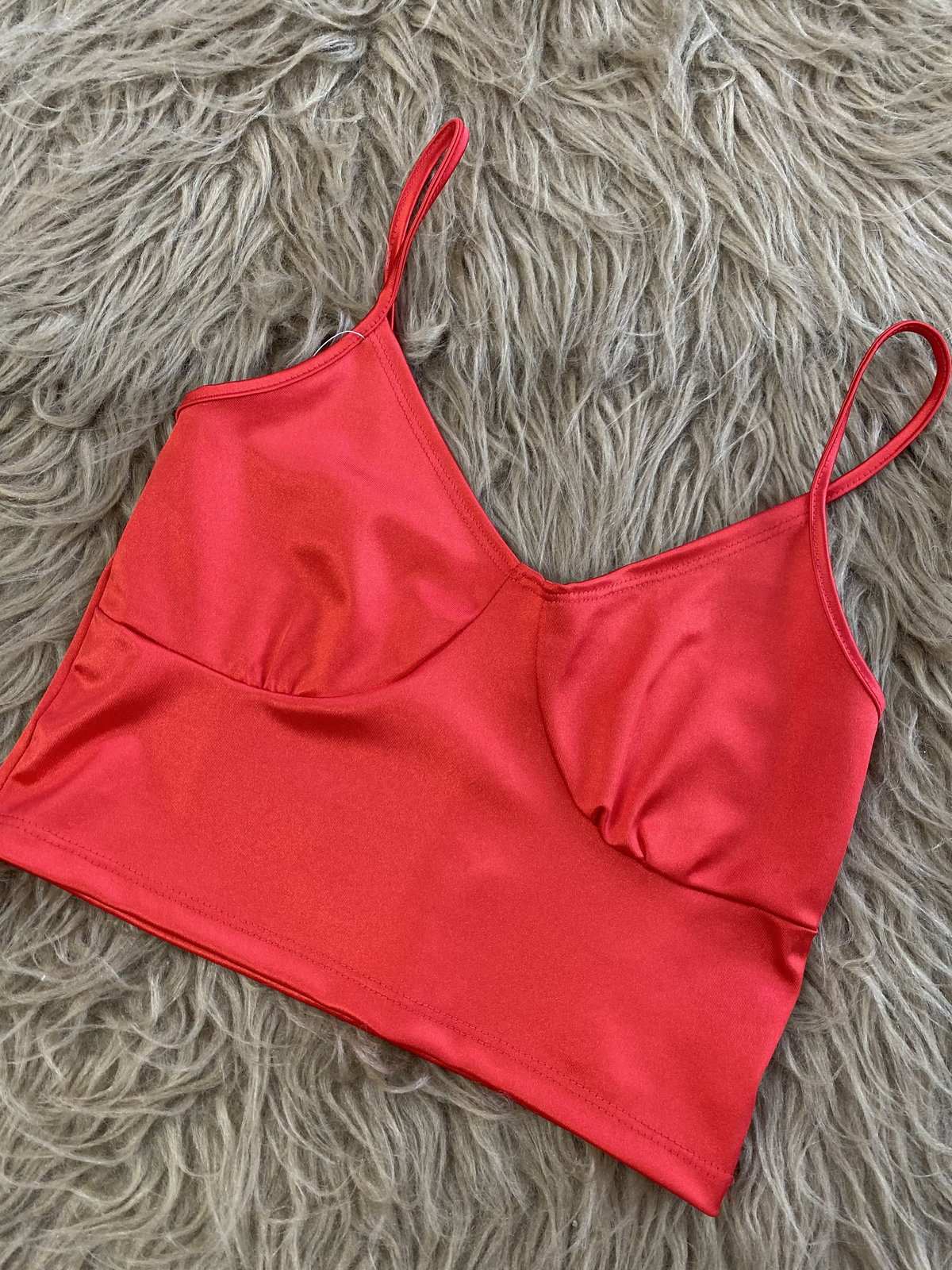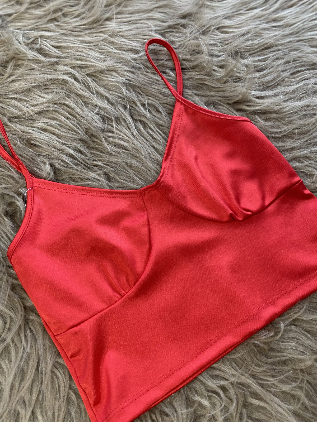 Top rojo de saten brilloso